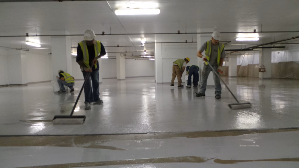 A properly installed traffic coating system forms a flexible, waterproof membrane that seals the concrete surface, prevents water penetration, and provides a skid-resistant finish for safer driving and walking conditions.