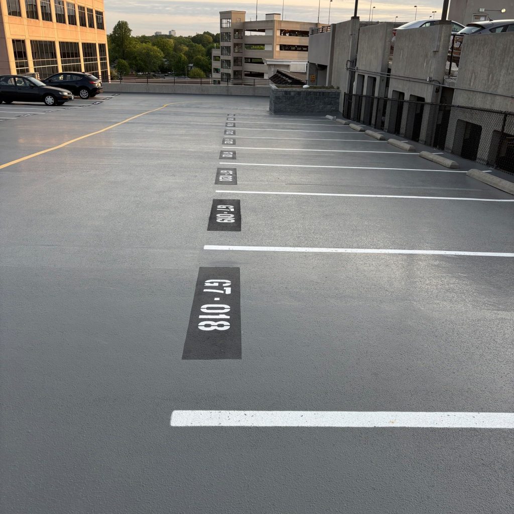 Faded or worn parking lines not only look unprofessional — they also create safety hazards and confusion for drivers. Restoration East uses high-durability, fast-drying paints specifically formulated for parking decks and concrete surfaces. Our experienced crew delivers sharp, consistent striping for: